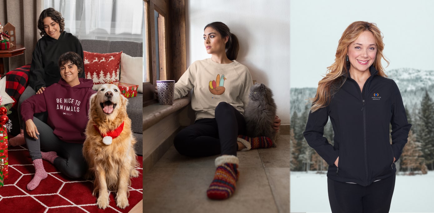 Get ready to boost your holiday cheer with Mercy For Animals’ Black Friday bonanza! Now through November 30, enjoy savings of 15% or more on everything from our store. When you shop our selection of Mercy For Animals logo apparel, drinkware, holiday cards, and gifts, you’re doing more than snagging great deals—you’re actively supporting our critical work to protect animals.