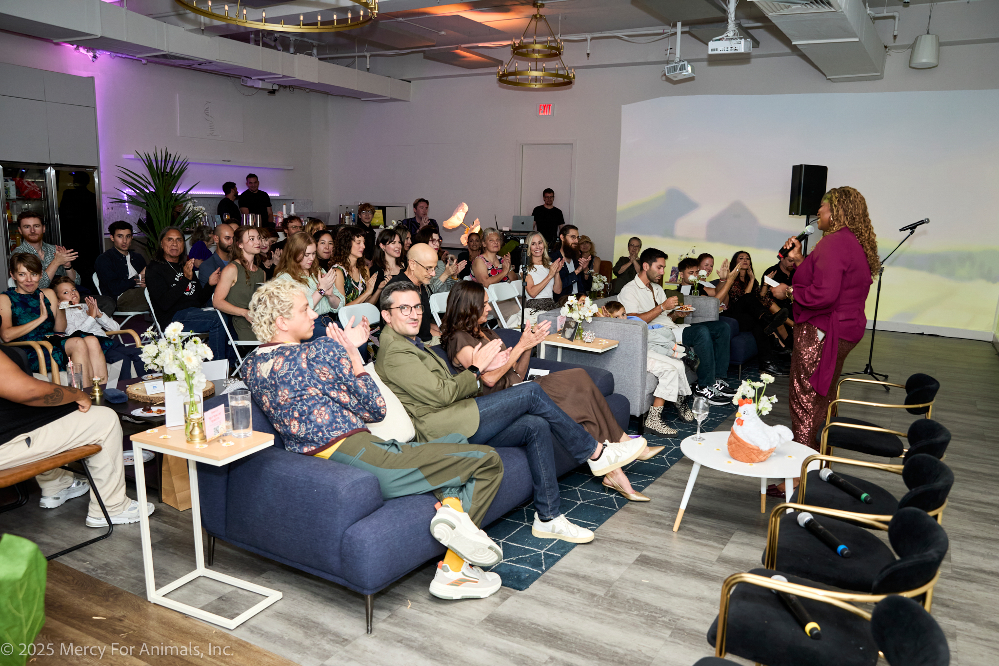Following the screening, a panel featuring Mercy For Animals’ president, Leah Garcés; producer Chloe Devine; writer and executive producer Matthew Scheer; and Mighty Oak Studios producer Kelsey Usher offered powerful insights. Their discussion informed and inspired the crowd, giving a behind-the-scenes look at the film’s creation and the mission driving it. We were honored to have our creative partners from Mighty Oak Studios in attendance to celebrate this milestone with us.