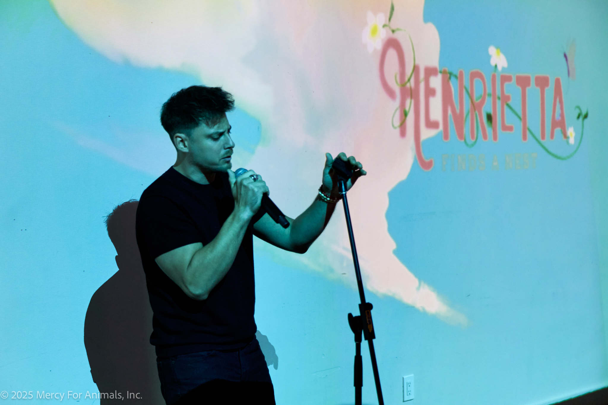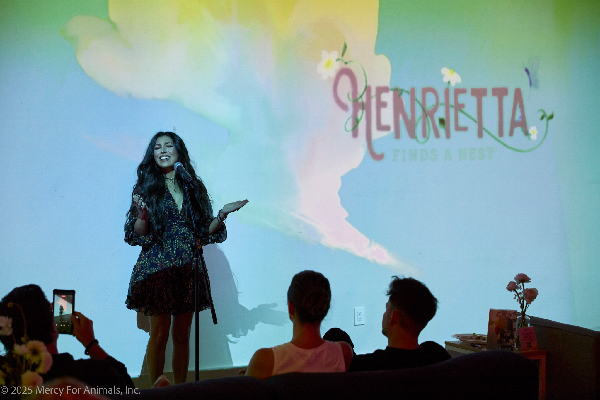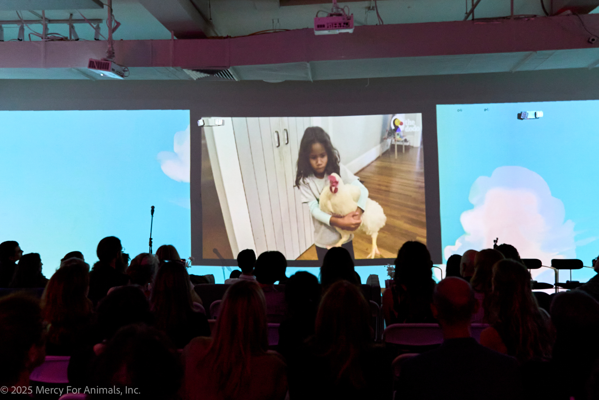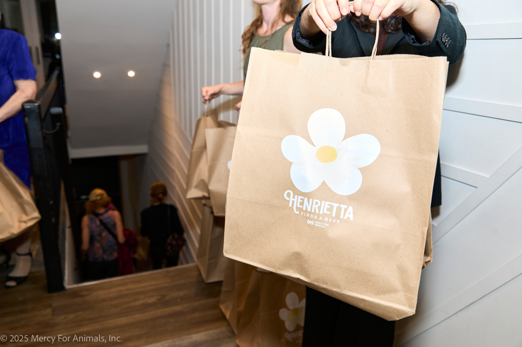 The highlight of the night was a special VIP screening of Henrietta Finds a Nest. Audience members were deeply moved by Henrietta’s journey—from factory farm neglect to love and friendship—and many shared how touched they were by the film’s message.